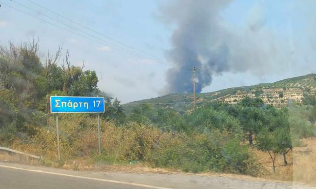 Οι άνεμοι στέλνουν προς το παρόν την φωτιά μακριά από το χωριό Δαφνί του δήμου Ευρώτα, υπάρχει όμως συναγερμός γιατί αν αλλάξει η κατεύθυνση του αέρα, θα κινηθεί προς το χριό.