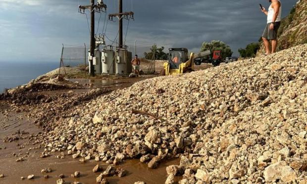Προβλήματα στην Κεφαλονιά - Φερτά υλικά και λάσπες έκλεισαν δρόμους