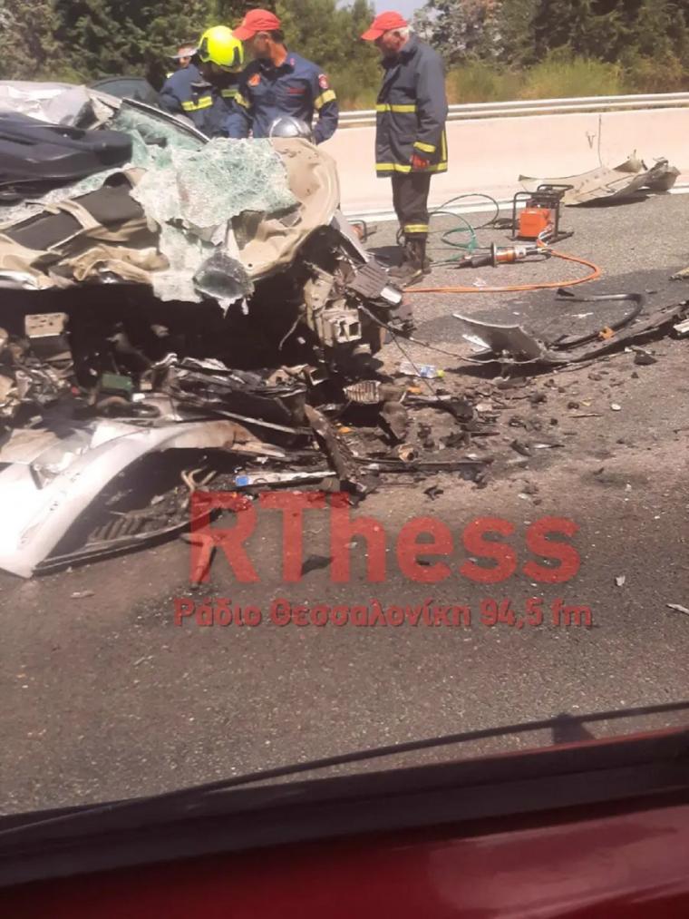 To Ι.Χ. συγκρούστηκε με to φορτηγό όχημα στο 18ο χιλιόμετρο της Εθνικής Οδού Θεσσαλονίκης – Σερρών