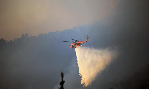 Η φωτιά καίει σε χορτολιβαδική έκταση, ενώ στο σημείο επιχειρούν 20 πυροσβέστες με οκτώ υδροφόρα οχήματα και από αέρος συνδράμουν δύο ελικόπτερα.