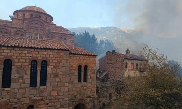 Η μεγάλη φωτιά στην περιοχή Στειρίου του Δήμου Διστόμου – Αράχοβας – Αντίκυρας Βοιωτίας απείλησε ιδιαίτερα τη Μονή του Οσίου Λουκά, μνημείου εγγεγραμμένου στον Κατάλογο της Παγκόσμιας Κληρονομιάς της UNESCO.