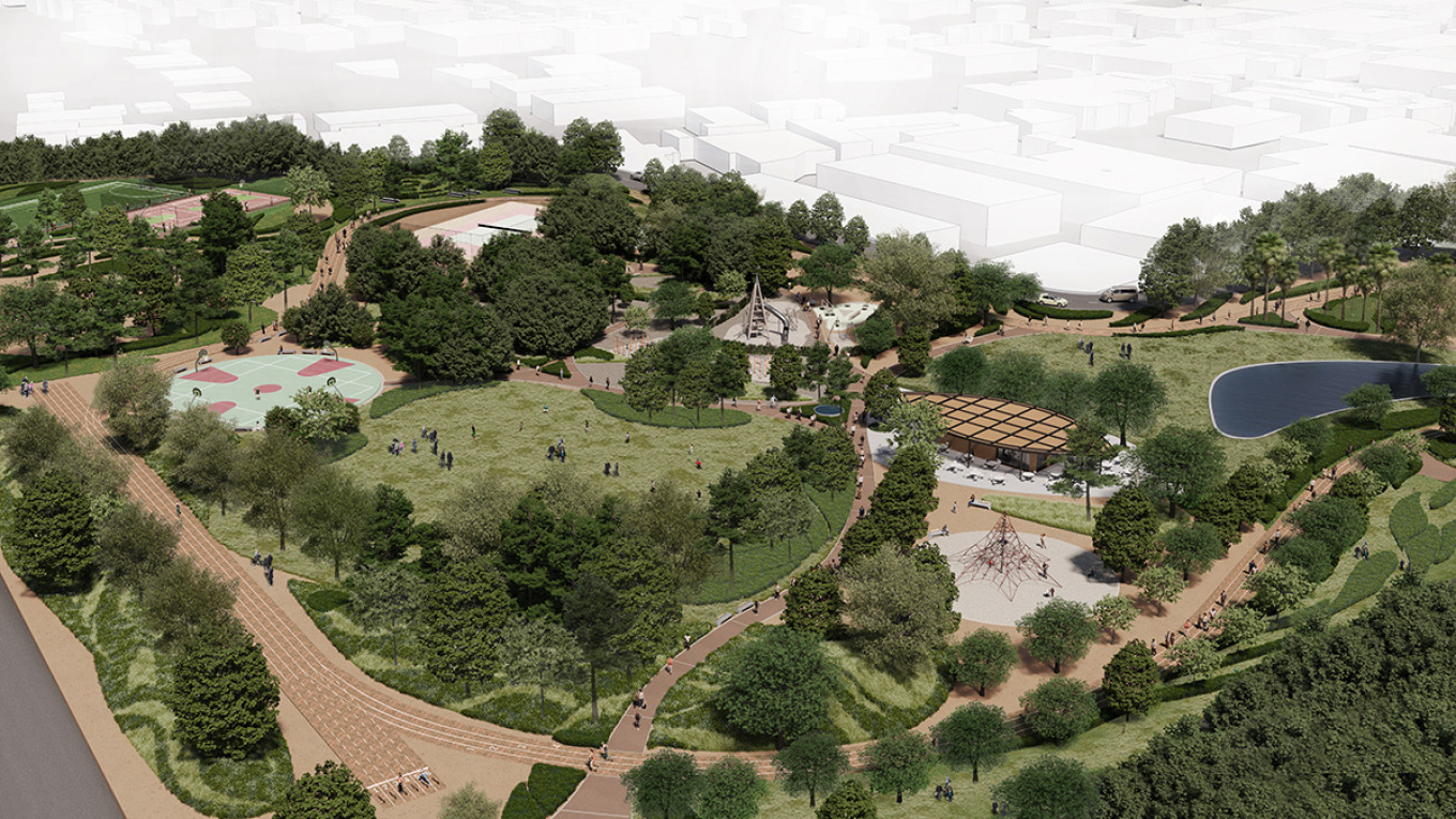 Στον πυρήνα του σχεδίου βρίσκεται η δημιουργία του μεγαλύτερου αστικού πάρκου που έχει δημιουργηθεί στην Αθήνα τα τελευταία περίπου εκατό χρόνια. Πρόκειται για 215 στρέμματα πρασίνου σε μία συνολική έκταση 260 στρεμμάτων. Για να γίνει αντιληπτό το μέγεθος του πάρκου, σημειώνεται ότι το Πεδίον του Άρεως που είχε διαμορφωθεί το 1934, είναι έκτασης 277 στρεμμάτων (μαζί με τον Λόφο Φινόπουλου).