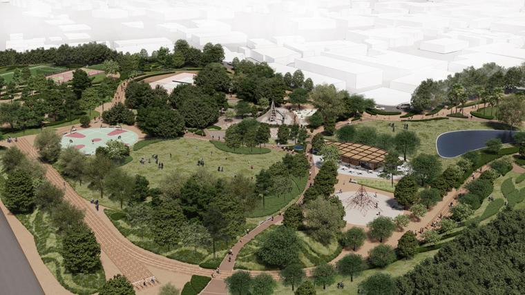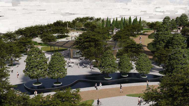 3.563 νέα δέντρα, 102.000 θάμνοι, κήποι βροχής, τεχνητοί λόφοι και μια τεχνητή λίμνη 950 τ.μ. στο νέο πάρκο