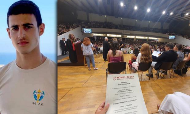 Σε κλίμα συγκίνησης, ο Κοσμήτορας της Νομικής Σχολής του Αριστοτέλειου Πανεπιστημίου Θεσσαλονίκης παρέδωσε σήμερα το πτυχίο του 23χρονου, Κυπριανού Παπαϊωάννου, στην αδελφή του Εύα. Έξι μήνες μετά το τραγικό σιδηροδρομικό δυστύχημα στα Τέμπη, όπου ο 23χρονος έχασε τη ζωή του μαζί με άλλα 56 επιβάτες, η Εύα παρέλαβε τη βεβαίωση που αναγράφει ότι κρίνεται άξιος του πτυχίου του Τμήματος Νομικής της Νομικής Σχολής του Αριστοτέλειου Πανεπιστημίου Θεσσαλονίκης.