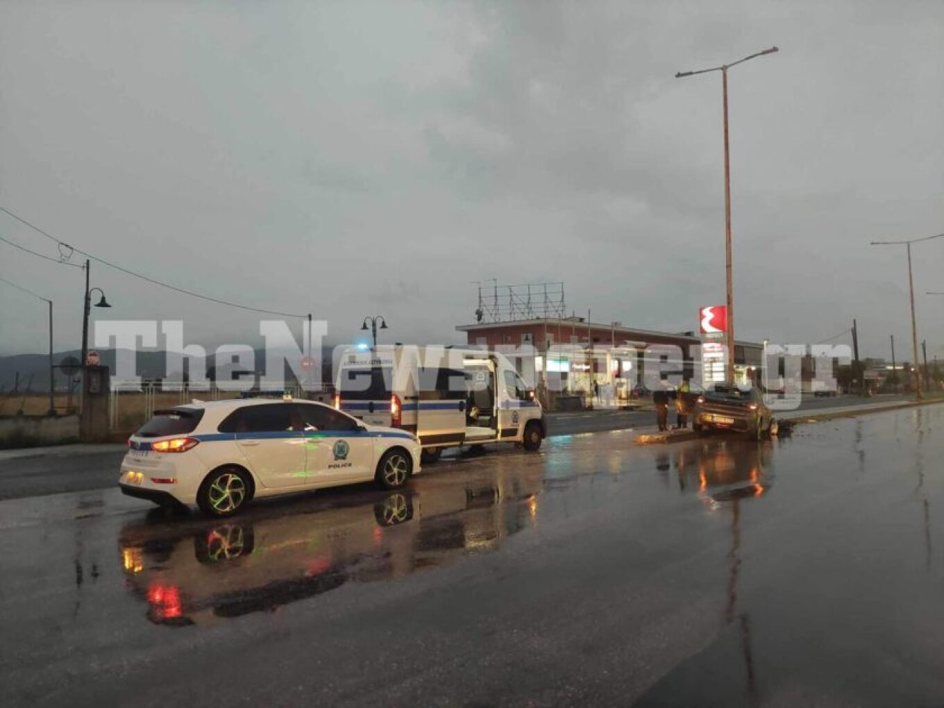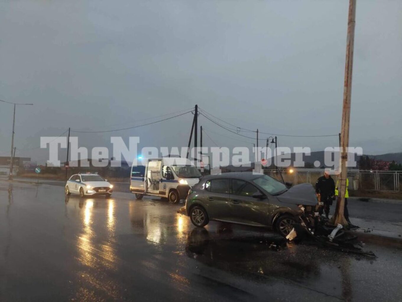 Σύμφωνα με το TheNewspaper.gr, το Ι.Χ. αυτοκίνητο που οδηγούσε μία γυναίκα καρφώθηκε σε κολώνα φωτισμού στο διάζωμα της λεωφόρου, πιθανά λόγω ολισθηρότητας του οδοστρώματος από την επέλαση της κακοκαιρίας «Daniel».