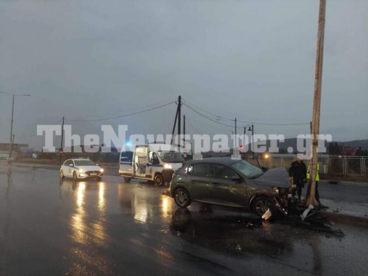 Η γυναίκα οδηγός έχασε τον έλεγχο του αυτοκινήτου της με αποτέλεσμα αυτό να εκτραπεί και να καταλήξει στην κολώνα.