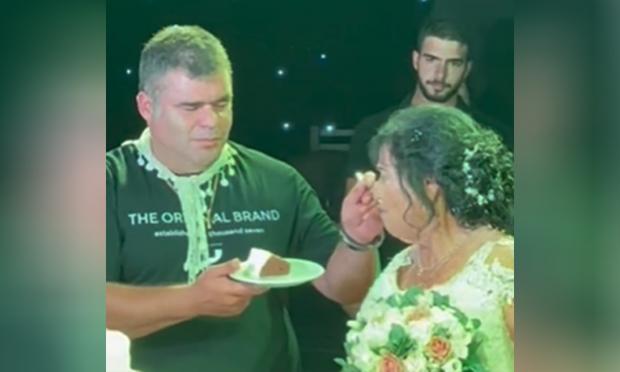 Χαιρέτησαν τον κόσμο, έκοψαν τη γαμήλια τούρτα και ο Κωστής, αφού έδωσε μια κουταλιά από το γλυκό στην Παρασκιώ, φρόντισε να φάει και ο ίδιος.