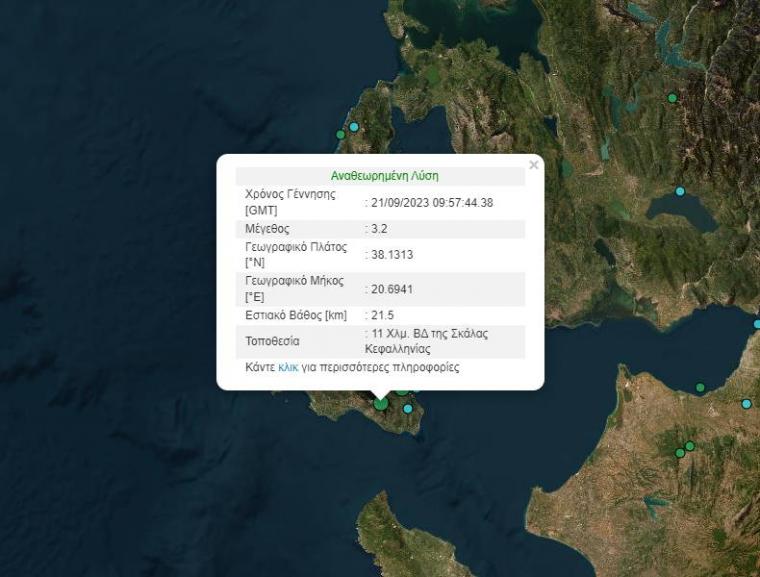 Αισθητή σεισμική δόνηση σημειώθηκε νωρίς το μεσημέρι της Πέμπτης 21 Σεπτεμβρίου στην Κεφαλονιά.