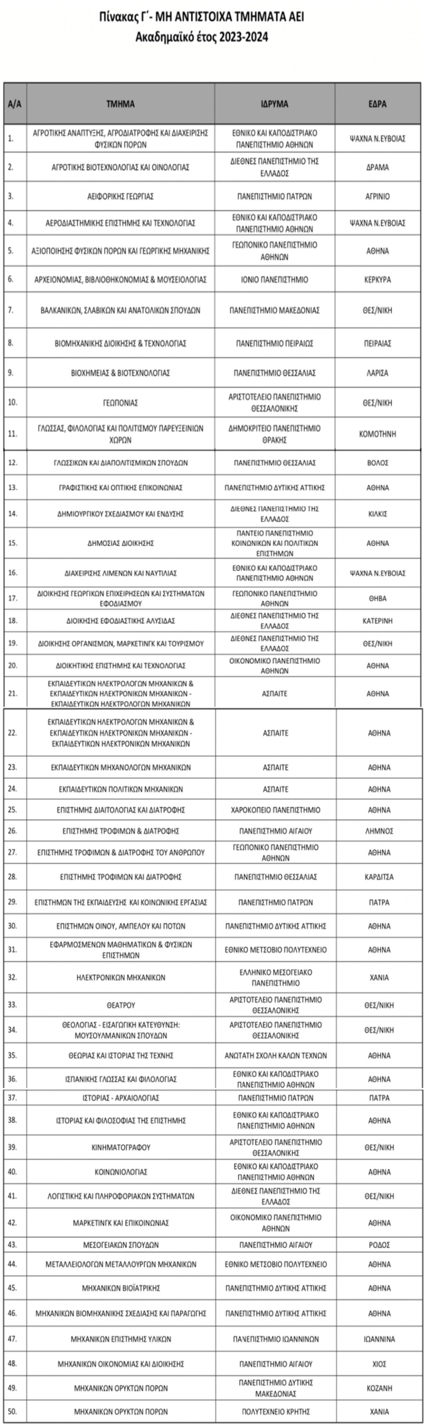 Επισημαίνεται, ωστόσο, πως θα χρειαστεί να προηγηθεί η σχετική διερεύνηση από τους φοιτητές, καθώς υπάρχουν 93 τμήματα, για τα οποία δεν υπάρχει αντιστοιχία, άρα δεν έχουν τη δυνατότητα υποβολής αίτησης μετεγγραφής.