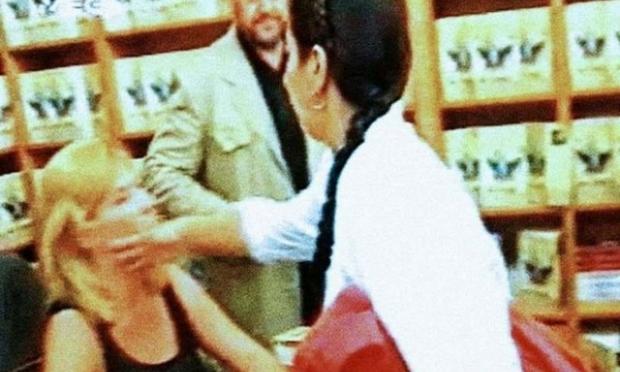 Στον χώρο υπάρχει αρκετός κόσμος που περιμένει υπομονετικά στην ουρά για να πάρει το βιβλίο και στη συνέχει να το δώσει στη Δήμητρα Λιάνη – Παπανδρέου προκειμένου να το υπογράψει. Εκεί υπάρχει και μια κάμερα. Ξαφνικά μια γυναίκα πλησιάζει στο γραφείο που καθόταν η συγγραφέας και της λέει: «Δεν καταδέχομαι να πάρω το βιβλίο. Ρεζίλεψες το γυναικείο φύλο». Πριν καν τελειώσει τη φράση της έχει χαστουκίσει τη Δήμητρα Λιάνη δυο φορές. Μια κανονικά και μια, όπως λένε οι μανάδες μας»... ανάποδα! Αν ειπώθηκε κάτι άλλο, αυτό δεν καταγράφηκε από την κάμερα του ΣΚΑΪ (που ήταν η μοναδική που βρέθηκε εκεί) καθώς καλύφθηκε από τα παρατεταμένα «ωωωωω» και «ααααα» των εμβρόντητων παρευρισκόμενων.