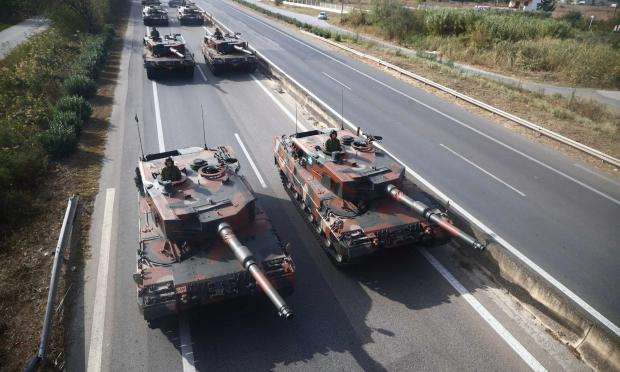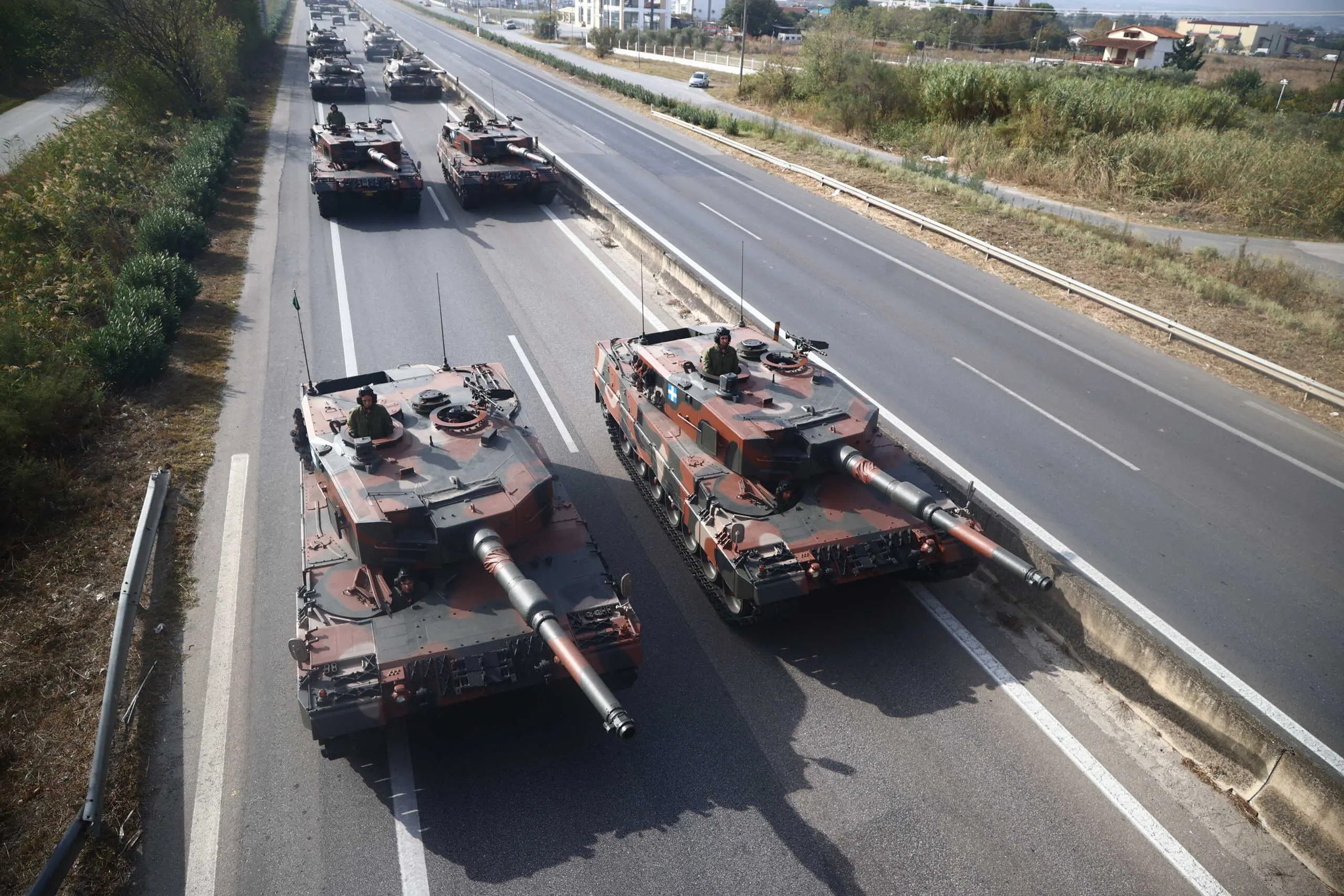 Εντυπωσιακή είναι η παρουσία των βαρέων οχημάτων όπως τα σύγχρονα άρματα μάχης τύπου Leopard 1 και 2 τα οποία σε άψογους σχηματισμούς δημιουργούν δέος στο πέρασμά τους, στη Θεσσαλονίκη.