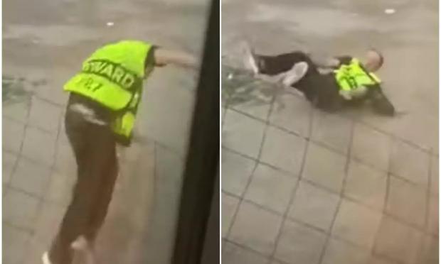 Ο υπάλληλος έπεσε στο έδαφος με τους οπαδούς της αγγλικής ομάδας να ξεσπούν σε γέλια. Για καλή του τύχη, ο υπάλληλος δεν έπαθε κάτι και σηκώθηκε γρήγορα.