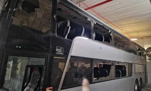 Πιο συγκεκριμένα στη φωτογραφία που βγήκε στη δημοσιότητα, διακρίνεται το μέγεθος της επίθεσης, καθώς όλα τα τζάμια του πούλμαν… αγνοούνται!