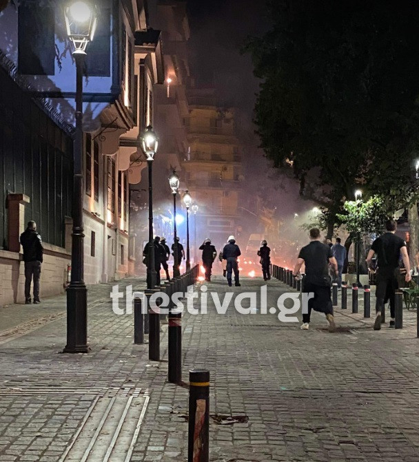 Σύμφωνα με το thestival.gr, περίπου 20 κουκουλοφόροι κινήθηκαν προς τη συμβολή των οδών Κασσάνδρου και Αποστόλου Παύλου και επιτέθηκαν στους αστυνομικούς.