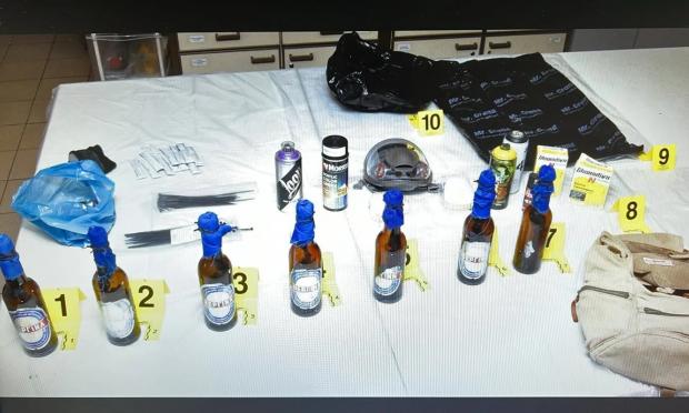 Όσον αφορά αντικείμενα που είχε στο σπίτι της, όπως σπρέι πιπεριού, μία αντιασφυξιογόνα μάσκα, πλαστικά δεματικά (tie wrap), σπρέι διαφορετικών χρωμάτων και συσκευασίες φαρμακευτικής πόσιμης γέλης, φέρεται να υποστήριξε ότι επειδή συμμετέχει σε φοιτητικές πορείες τα κατείχε για λόγους ατομικής προστασίας.