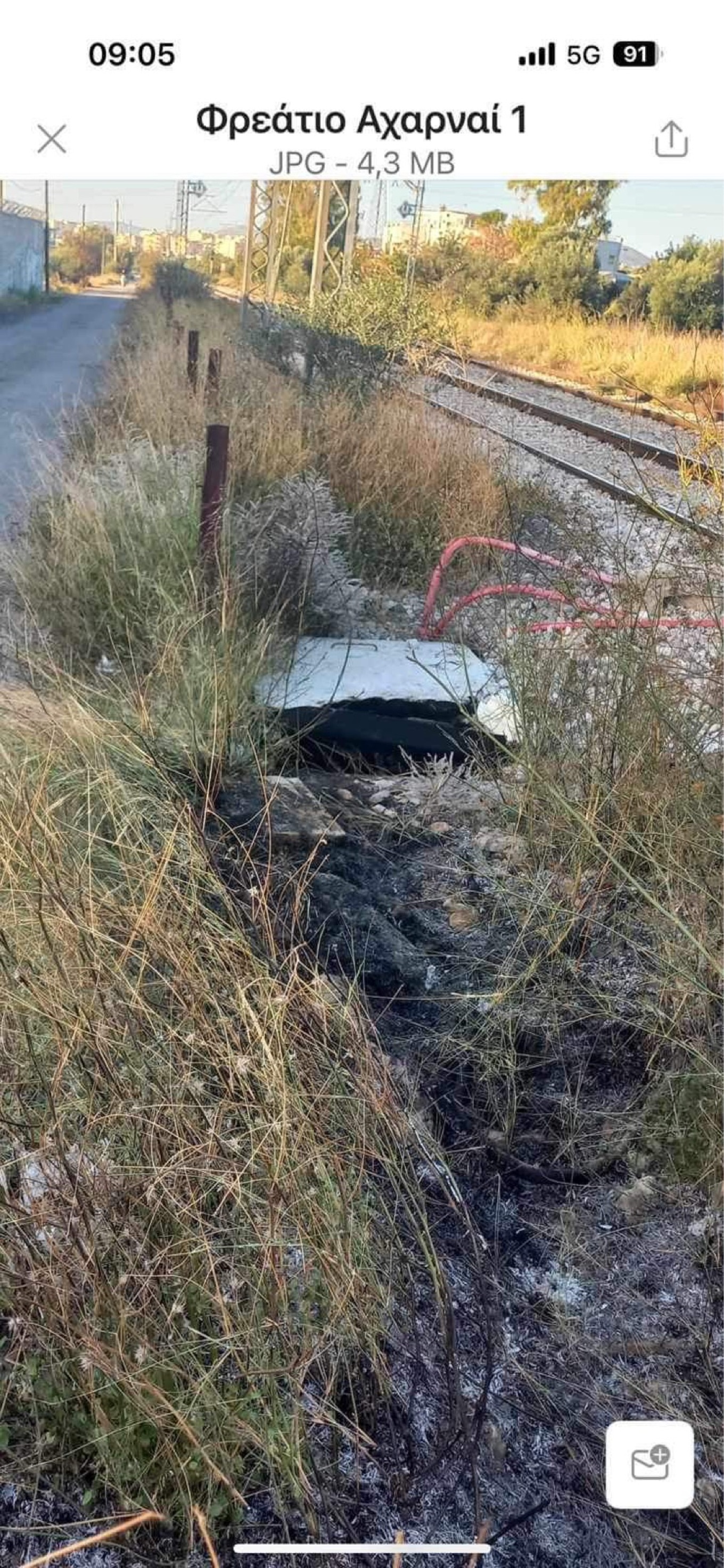 Άμεσα συνεργεία του ΟΣΕ και του Αναδόχου ξεκίνησαν την διαδικασία ανίχνευσης βλάβης. Κοντά στον Υποσταθμό Υψηλής Τάσης Αχαρνών που τροφοδοτεί την ηλεκτροκίνηση τα συνεργεία βρήκαν φρεάτιο που άγνωστοι είχαν σπάσει το κάλυκα σκυροδέματος και είχαν βάλει φωτιά με εύφλεκτο υγρό στα καλώδια χωρίς να κλέψουν τίποτα.