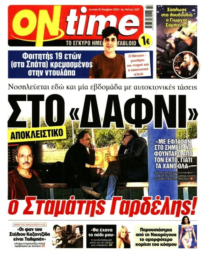 Όπως αναφέρει το δημοσίευμα, στην «ON time» έφτασε μία φωτογραφία του Αλκίνοου Μπουνιά με τον Σταμάτη Γαρδέλη, με τη σημείωση «στην Α’ Ψυχιατρική Κλινική στο “Δαφνί”». Αφού επικοινώνησαν αρχικά με τον Αλκίνοο Μπουνιά, ο οποίος δεν θέλησε να αναφερθεί στο θέμα, στη συνέχεια η Σάσα Σταμάτη ήρθε σε τηλεφωνική επικοινωνία με τον Σταμάτη Γαρδέλη.