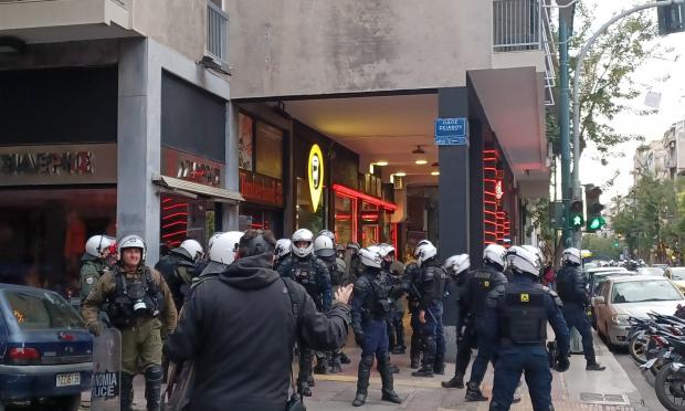 Σύμφωνα με πληροφορίες, όταν εμφανίστηκαν άντρες της αστυνομίας, ομάδα από άτομα του αντιεξουσιαστικού χώρου έστησαν οδοφράγματα και πέταξαν αντικείμενα και πέτρες στους άντρες των ΜΑΤ.