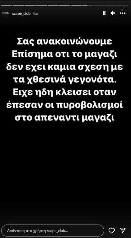 Συγκεκριμένα το «Esqape» στην ανακοίνωσή του στο Instagram, αναφέρει πως την ώρα των πυροβολισμών είχε ήδη κλείσει.