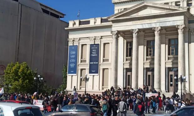 Περίπου 300 άτομα, συμπεριλαμβανομένων φοιτητών και μαθητών των Γενικών Λυκείων, έχουν συγκεντρωθεί αυτή τη στιγμή έξω από το Δημοτικό Θέατρο Πειραιά για να διαδηλώσουν εναντίον του νομοσχεδίου για τα μη κρατικά πανεπιστήμια.