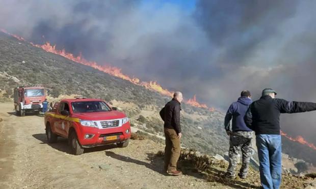 Η φωτιά σύμφωνα με το andriakipress εκτείνει σε μέτωπο ενός χιλιομέτρου και κινείται ανατολικά. Στο σημείο πνέουν άνεμοι εντάσεως 8 μποφόρ με δυνατές ριπές που φτάνουν τα 9.