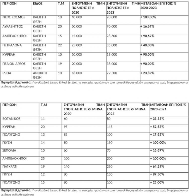 Συγκεκριμένα, στην περιοχή του Νέου Κόσμου κλειστή θέση στάθμευσης 10τμ, το 2020, είχε ζητούμενη τιμή πώλησης 10.000€, ενώ σήμερα αγγίζει τις 20.000€,