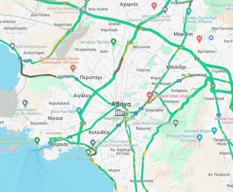 Προβλήματα στην κίνηση υπάρχουν και στην άνοδο του Κηφισού από το Περιστέρι μέχρι τη Φιλαδέλφεια, σε τμήματα της Βασ. Σοφίας και Βασ. Κωνσταντίνου καθώς και στη λεωφόρο Ποσειδώνος, στο ρεύμα προς Γλυφάδα, από το Ίδρυμα Σταύρος Νιάρχος μέχρι τον Φλοίσβο.