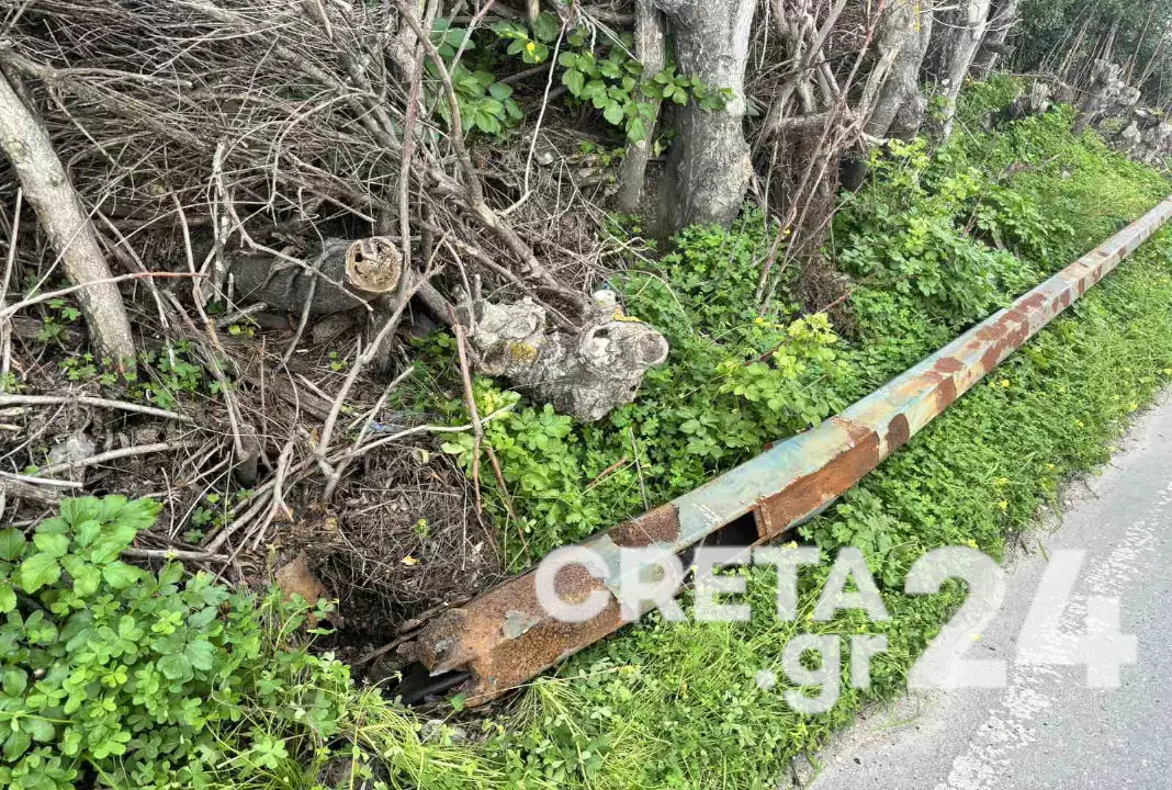 Η κολώνα έπεσε στο έδαφος, εξαιτίας των ισχυρών ανέμων, λίγο μετά το Βενιζέλειο Νοσοκομείο, πριν τις αρχαιότητες της Κνωσού. Δείτε τις εικόνες του creta24.gr από το σημείο.