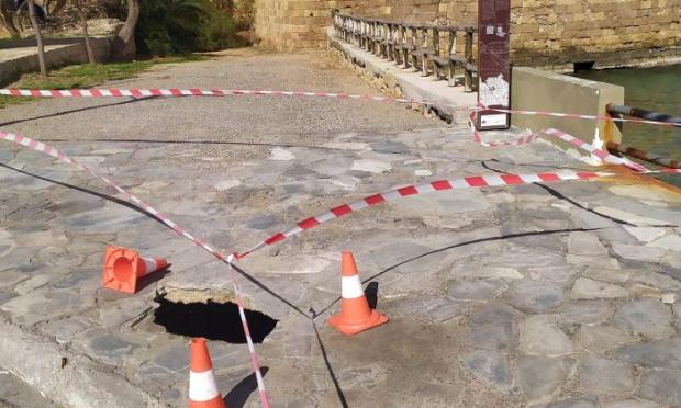 Στα Χανιά και συγκεκριμένα στην αρχή της πύλης της Άμμου δίπλα στη Σαμπιονάρα, έγινε ξανά κατάρρευση τμήματος του πεζοδρομίου.