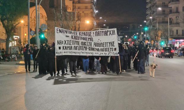 Πορεία με αφορμή την Παγκόσμια Ημέρα της Γυναίκας πραγματοποιούν αυτή την ώρα στη Θεσσαλονίκη άτομα του ευρύτερου αντιεξουσιαστικου χώρου.