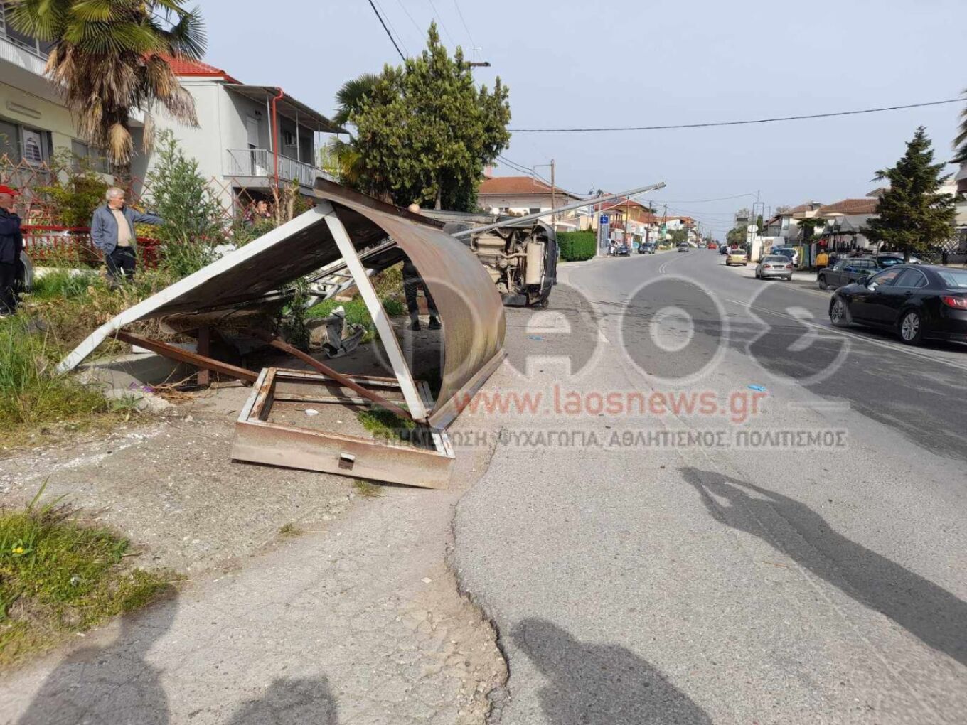 Συγκεκριμένα, ένα ΙΧ επιβατικό αυτοκίνητο με οδηγό κάτοικο Νάουσας, με κατεύθυνση από Βέροια προς Νάουσα, πέρασε στο αντίθετο ρεύμα και έπεσε επάνω στο στέγαστρο στάσης λεωφορείων.