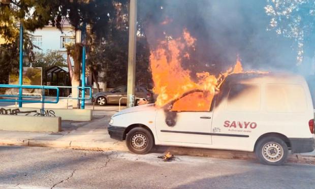 Φωτιά, υπό άγνωστες συνθήκες, ξέσπασε σε βαν το οποίο κινούνταν επί της Λεωφόρου Κηφισίας το απόγευμα της Πέμπτης.