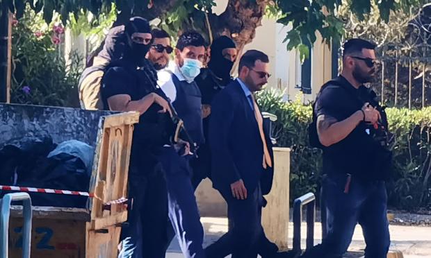 Ο κατηγορούμενος για ανθρωποκτονία από πρόθεση και οπλοφορία-οπλοχρησία νωρίς το πρωί οδηγήθηκε συνοδεία ισχυρής αστυνομικής δύναμης στο ανακριτικό γραφειο προκειμένου να απολογηθεί .