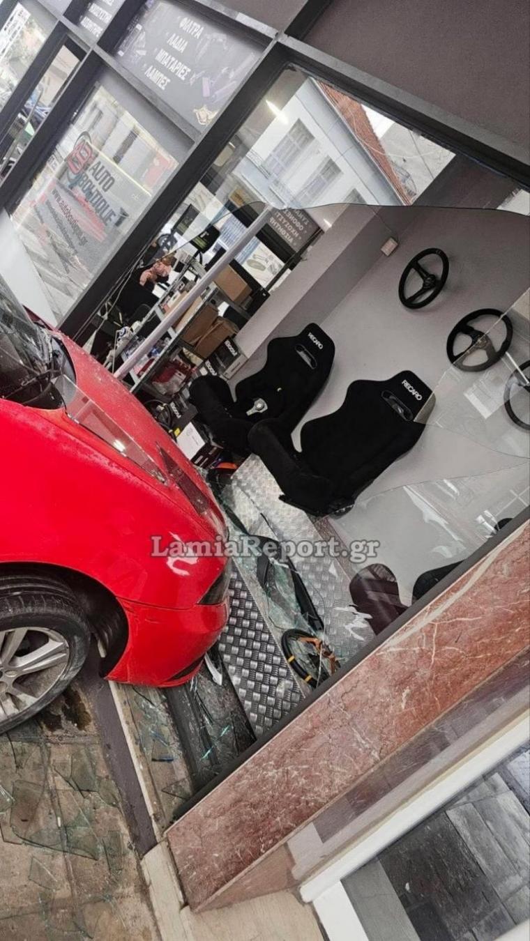 Το τροχαίο στη Λαμία συνέβη όταν το αυτοκίνητο την ώρα που κινούταν και πήγε να στρίψει από Αβέρωφ για Δροσοπούλου, γλίστρησε και για να μην πέσει πάνω στα παρκαρισμένα, έκοψε απότομα το τιμόνι και μπήκε μέσα στη βιτρίνα του καταστήματος ανταλλακτικών αυτοκινήτου.