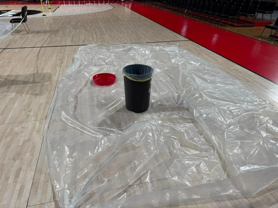 Οι άνθρωποι των «ερυθρολεύκων» τοποθέτησαν ένα ειδικό στρώμα αλλά και νάιλον σακούλες στο παρκέ, προκειμένου να αποφύγουν τα χειρότερα.