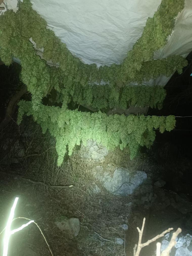 Εντός της φυτείας βρέθηκαν δύο ειδικά διαμορφωμένοι χώροι αποξήρανσης ακατέργαστης κάνναβης, ενώ ακολούθησε έρευνα στο σπίτι του 57χρονου και σε ποιμνιοστάσιο ιδιοκτησίας του.