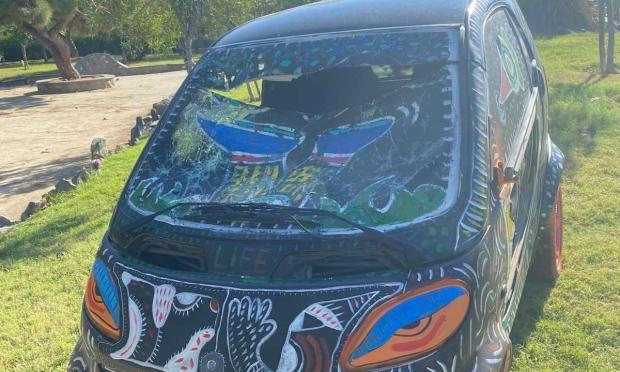 Ένα αυτοκίνητο που είχε μετατραπεί σε έργο τέχνης και κοσμούσε τον Κήπο της Μεσογείου, στη νέα παραλία Θεσσαλονίκης, βρέθηκε στο στόχαστρο βανδάλων το βράδυ της Παρασκευής (10/10), σύμφωνα με τα thestival.gr