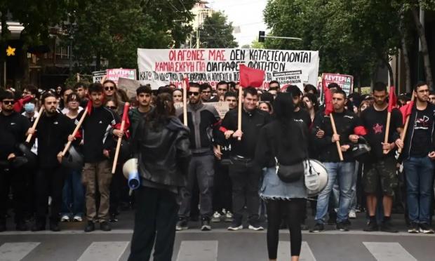 Το συλλαλητήριο στο οποίο συμμετέχουν πολλοί φοιτητικοί σύλλογοι, κινείται με παλμό στο κέντρο της Αθήνας, με τους διαδηλωτές να φωνάζουν συνθήματα.