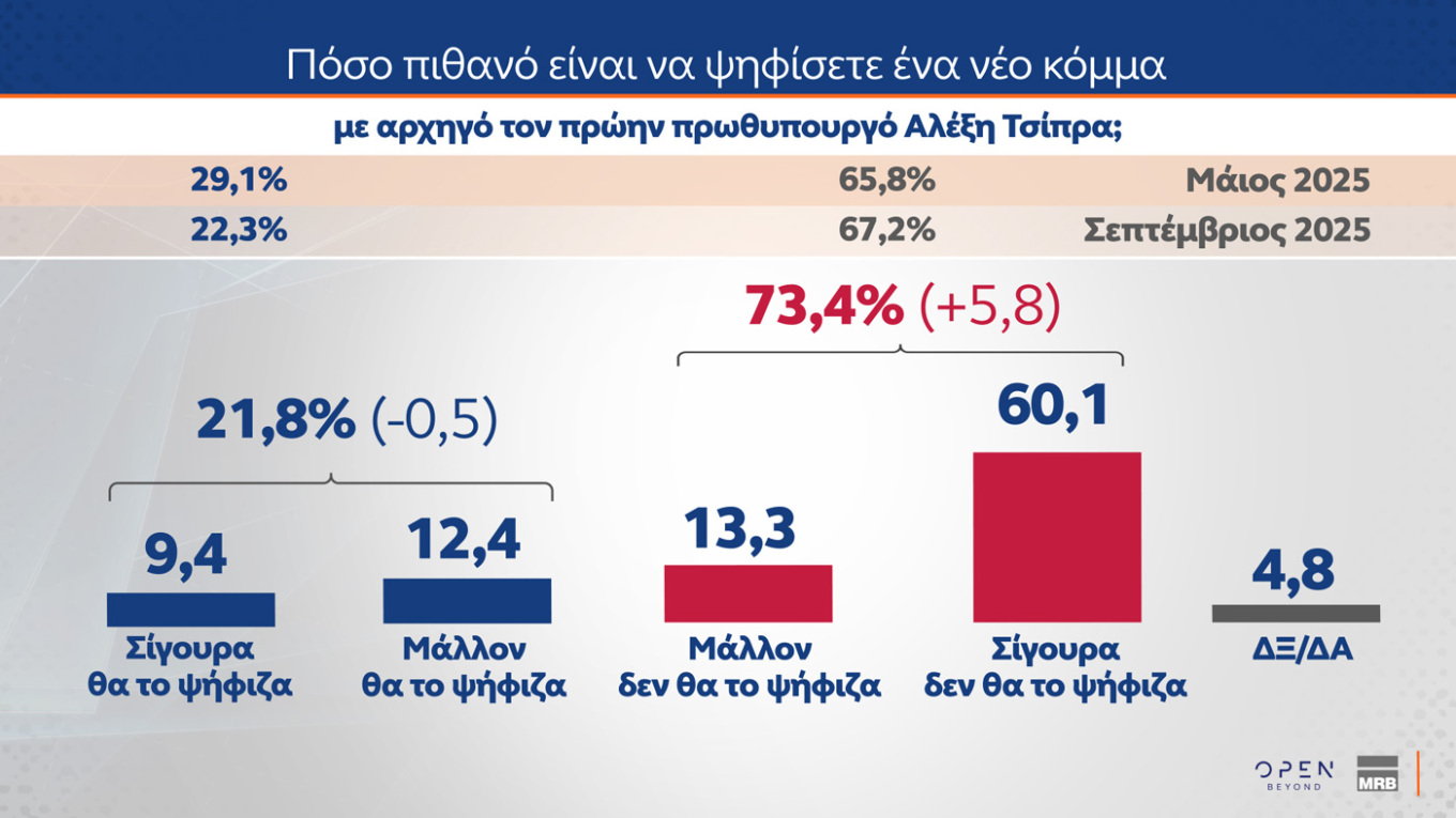 Δημοσκόπηση MRB: Η ΝΔ προηγείται του ΠΑΣΟΚ κατά 14,2 μονάδες