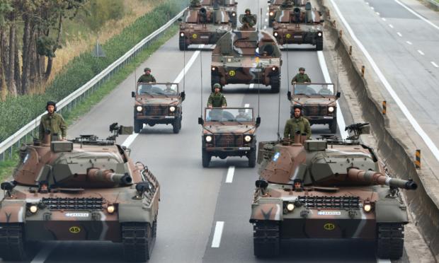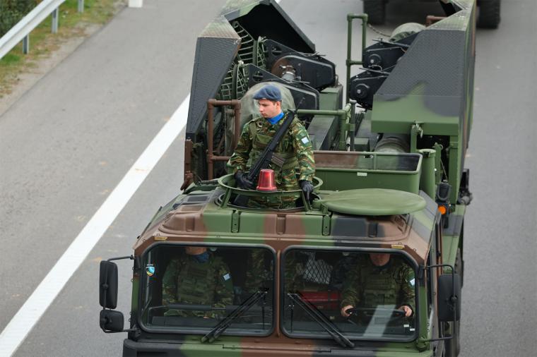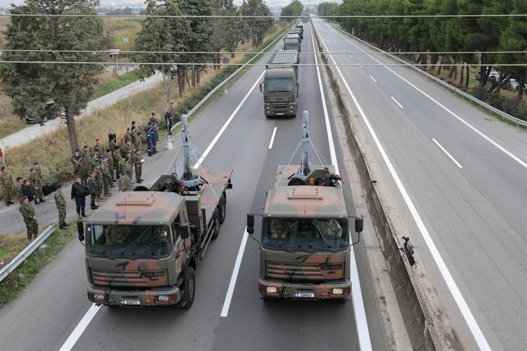 Από άρματα, οχήματα υποστήριξη και στρατιωτικό εξοπλισμό γέμισε το πρωί της Πέμπτης η εθνική οδός Θεσσαλονίκης-Νέων Μουδανιών στη Χαλκιδική για την πρόβα της στρατιωτικής παρέλασης της 28ης Οκτωβρίου στη Θεσσαλονίκη.