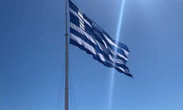 Υψώθηκε η τεράστια ελληνική σημαία στο λιμάνι της Χίου, ενόψει της 28ης Οκτωβρίου