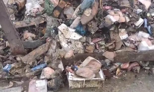 Πρόκειται για κρέατα, ψάρια, συσκευασμένα τρόφιμα ζωικής προέλευσης, πλαστικά και άλλα υλικά τα ήταν μέσα στο κατάστημα που κάηκε ολοσχερώς, απορρίφθηκαν και ενταφιάστηκαν στο προαύλιο της εταιρείας, χωρίς καμία αδειοδότηση ή τήρηση περιβαλλοντικών κανόνων.