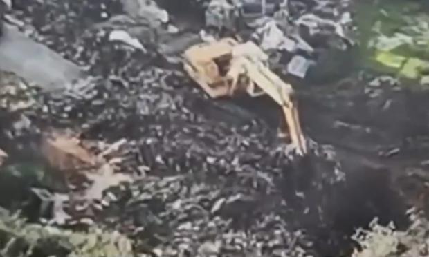 Βίντεο από την παράνομη μεταφορά των αποβλήτων, έφερε στη δημοσιότητα η ΕΡΤ, στο οποίο φαίνονται εκσκαφείς να ανοίγουν τις τάφρους και να θάβουν μέσα ψάρια, κοτόπουλα και χαλασμένα κρέατα.