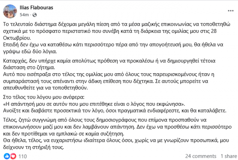 Η ανάρτηση του Ηλία Φλάμπουρα: