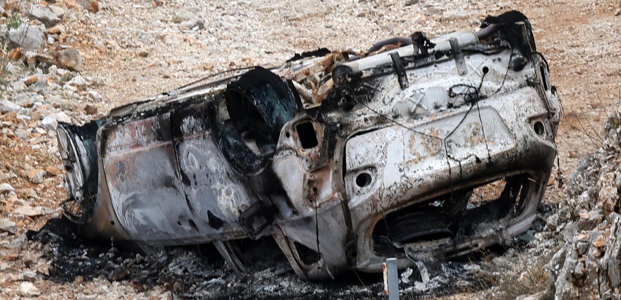 Το καμένο SUV και τα όπλα των εκτελεστών