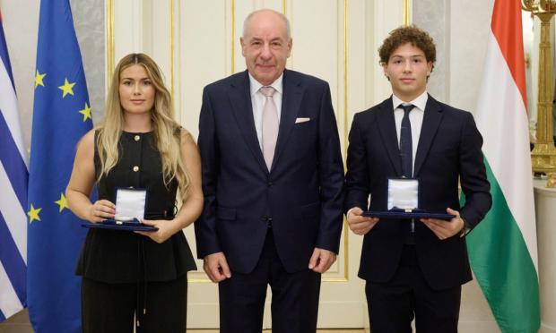 Ο Ούγγρος πρόεδρος, κ. Σούλιοκ, δημοσίευσε στο Facebook φωτογραφίες από τη βράβευση των δύο νέων ευχαριστώντας τους.