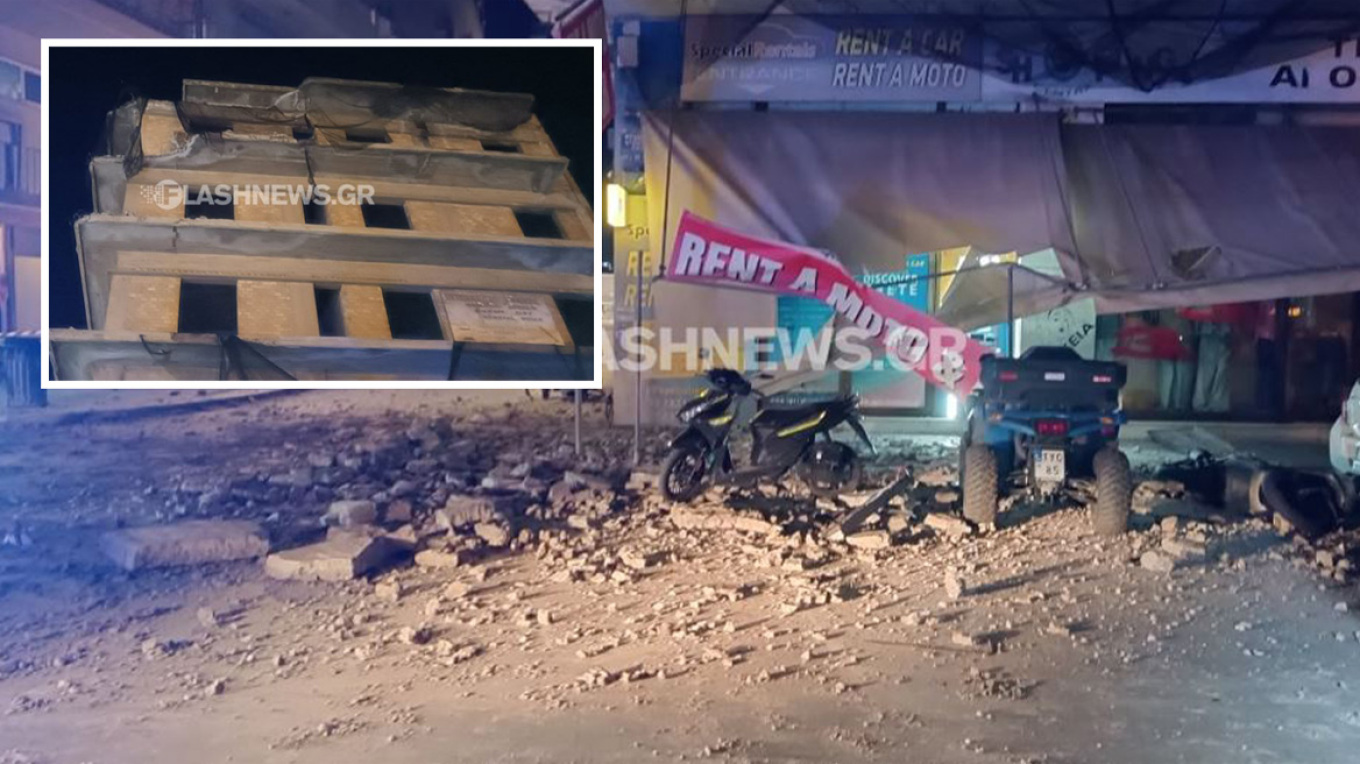 Μπαλκόνι κατέρρευσε στα Χανιά: Τσιμεντένια συντρίμμια σκορπίστηκαν σε δρόμο γεμάτο κόσμο (εικόνες)