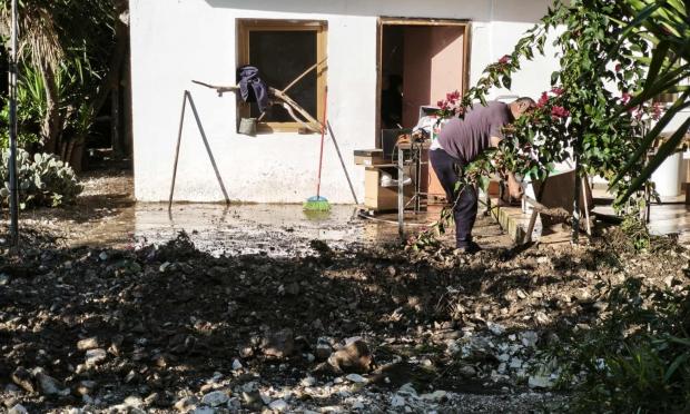 Η πρόσβαση προς τις μονάδες ιχθυοκαλλιέργειας διακόπηκε από χθες, καθώς ο δρόμος καλύφθηκε από φερτά υλικά και λάσπη.