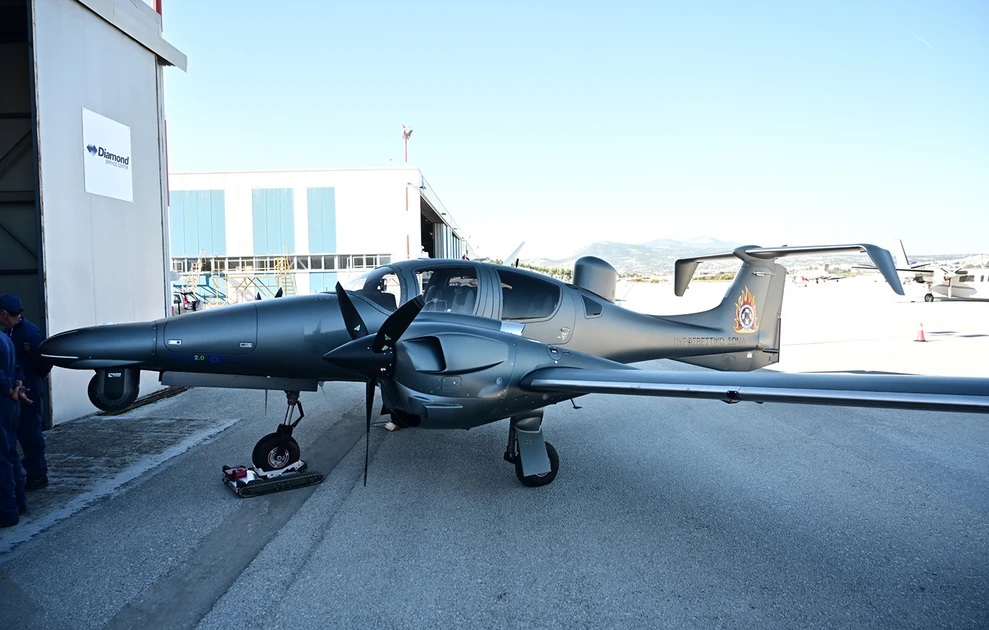 Ο πρωθυπουργός, Κυριάκος Μητσοτάκης, μιλά αυτήν την ώρα στην εκδήλωση του υπουργείου Κλιματικής Κρίσης και Πολιτικής Προστασίας για την παραλαβή τριών αεροσκαφών Diamond DA62 MPP του Πυροσβεστικού Σώματος, στο Αεροδρόμιο Μεγάρων.