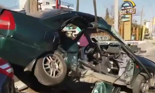 Ενδεικτικό της σφοδρής σύγκρουσης είναι ότι η πόρτα του οδηγού του αυτοκινήτου με τους δύο νεκρούς εκτοξεύτηκε αρκετά μέτρα μακριά.